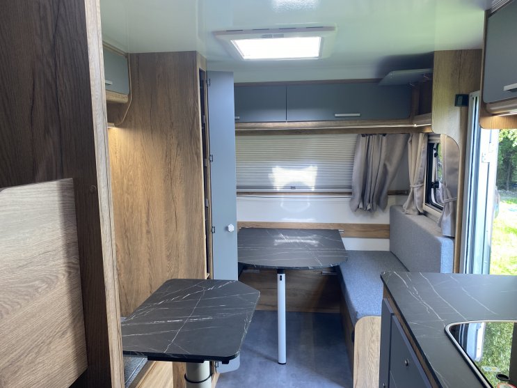 Przyczepa wyposażone jest w toaletę i prysznic, umywalkę, oraz kuchenkę gazową, zlewozmywak i lodówkę.