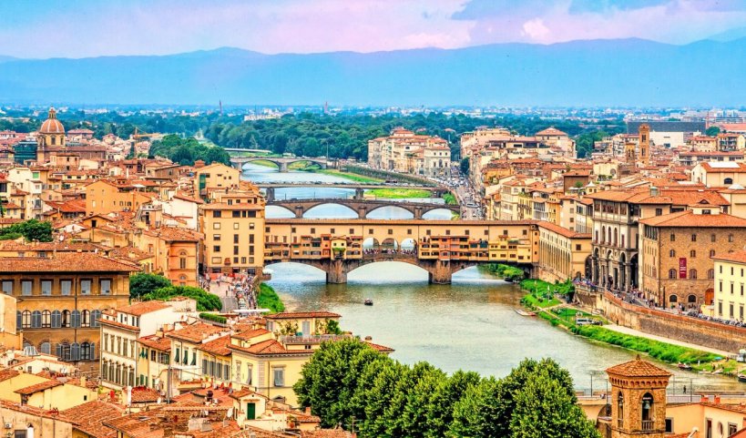➤ Zwiedzanie stolicy Toskanii, Katedra Santa Maria Del Flore, Kampanila Giotta, Baptysterium, kościół św. Krzyża (6 €), Plac Signoria z ratuszem, Most Złotników na rzece Arno, czas wolny